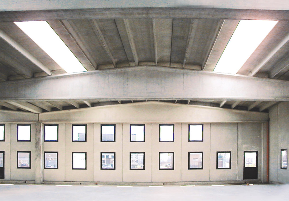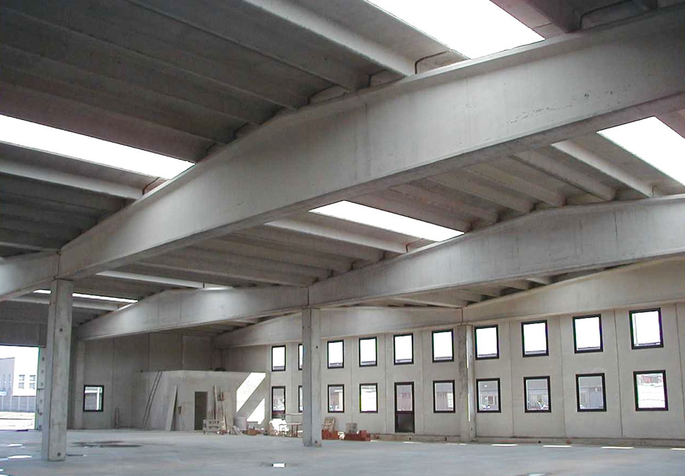 Il sistema di copertura a DOPPIA PENDENZA è la classica struttura a capriata precompressa che può raggiungere luci fino a 35 mt. Viene completata con tegoli a doppio T, lastre ad intradosso piano o arcarecci in ca. Ha una pendenza del 10% e può raggiungere elevate classi di resistenza a fuoco sino a R120.