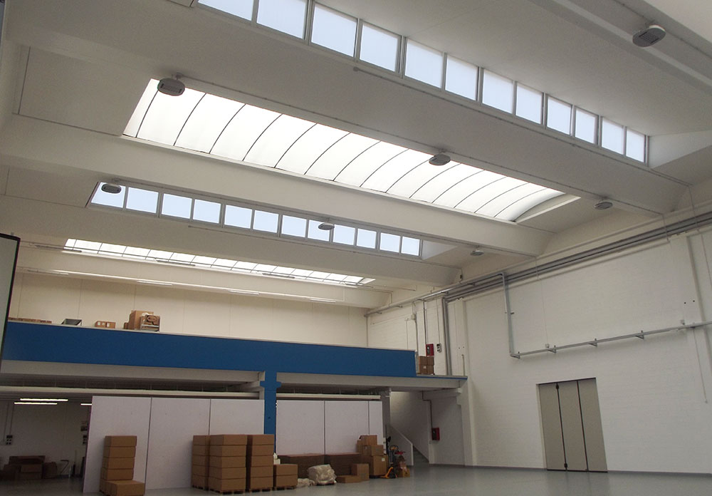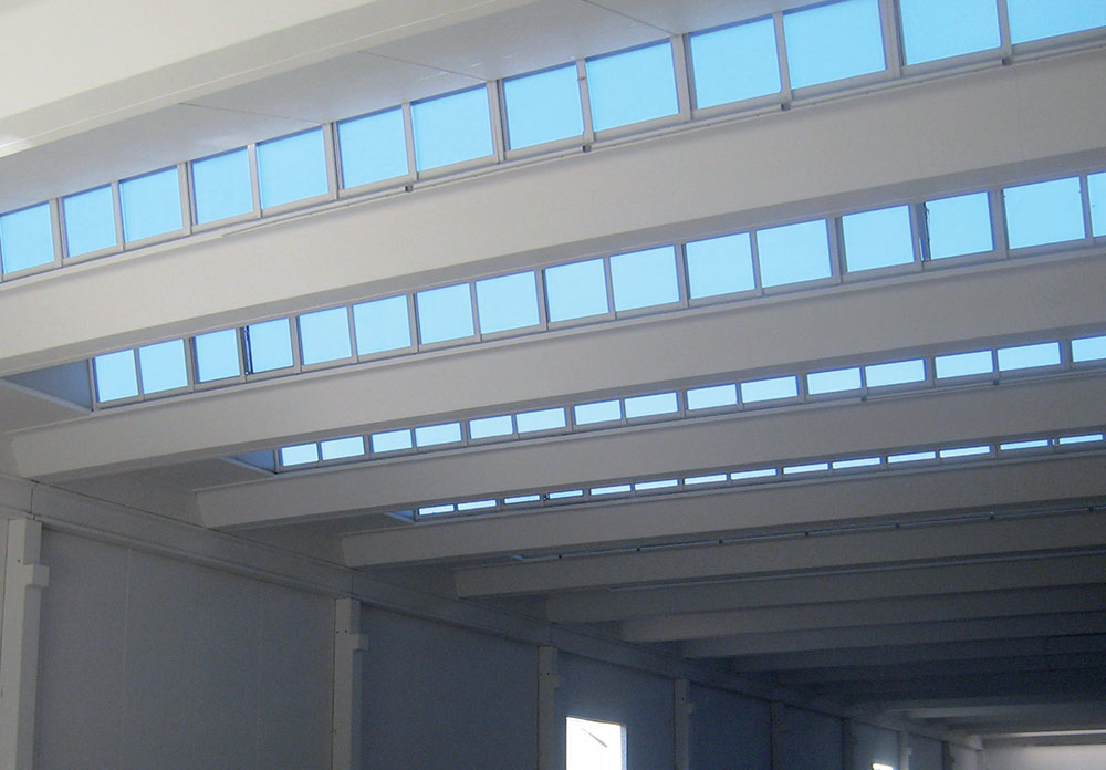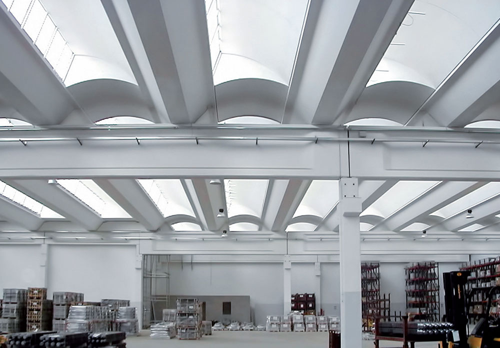 L'impressione che si ha osservando una copertura alare VEMA è quella di un sistema costruttivo solido e prestante ma allo stesso tempo sobrio, SINUOSO ED ELEGANTE con linee architettoniche armoniose arricchite da una PERFETTA ILLUMINAZIONE INTERNA DEGLI AMBIENTI DI LAVORO. Il sistema costruttivo VEMA risulta inoltre estremamente flessibile ed evoluto e viene completato con distanziamenti in lastre di cemento armato o di tipo metallico sandwich, con forma retta, curva o a shed. I RAPPORTI AERO-ILLUMINANTI VENGONO SEMPRE GARANTITI mediante l'inserimento di lucernari fissi o apribili zenithali continui, monoblocco ad “oblò”, oppure orientati con luce indiretta e diffusa a Shed, con predisposizione per eventuali evacuatori di fumo e calore. Il sistema di copertura VEMA può essere impermeabilizzato con membrane di tipo elastoplastomerico/tpo, OPPURE CON SOLUZIONI INTERAMENTE METALLICHE “COVER ALL METAL” (Lamiera zincata, Aluzinc, Alluminio, Acciao Inox), con opportuni schermi vapore e coibentazioni secondo Dlgs311. Le testate filanti del tegolo alare VEMA, con idonee pendenze strutturali, permettono di convogliare tutte le acque meteoriche sui perimetri esterni, con sistema garantito “ACQUA FUORI” per una totale sicurezza di tenuta e notevoli risparmi di linee fognarie.